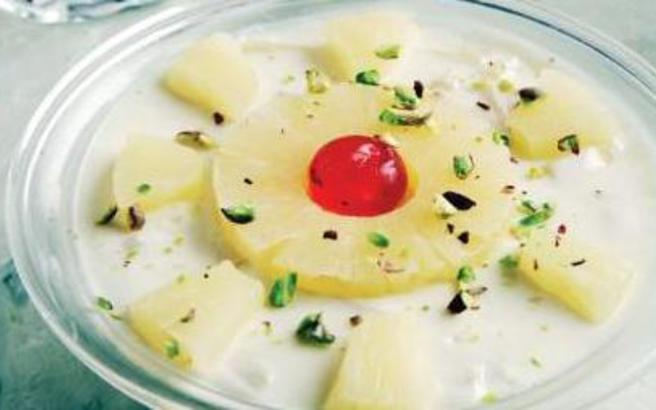 Συνεχίζοντας και αφού έχει πήξει το μείγμα με το γιαούρτι μας ρίχνουμε από πάνω το ζελέ μαζί με τα κομματάκια ανανά και το ξανά βάζουμε στη κατάψυξη για περίπου 10 λεπτά μέχρι κρυώσει.