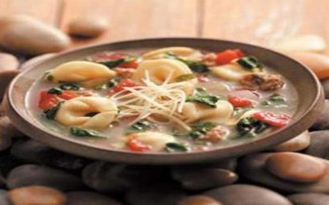 Ρίχνουμε στην κατσαρόλα το ζωμό ζεστό και τα αφήνουμε όλα μαζί να σιγοβράσουν για 10 λεπτά περίπου. Στη συνέχεια, αλατοπιπερώνουμε και προσθέτουμε τα τορτελίνια.