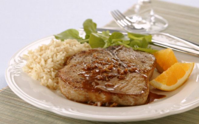 Αφαιρούμε τις μπριζόλες από το τηγάνι και περιχύνουμε από πάνω με τη σάλτσα πορτοκάλι.