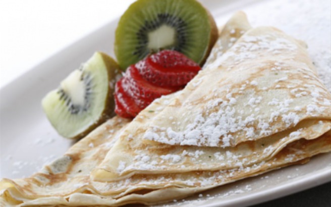 Ρίχνετε 1 κουτάλα σούπας από το μείγμα και γέρνετε το τηγάνι για να απλωθεί το μείγμα στον πάτο του τηγανιού. Ψήνετε την κρέπα σε σιγανή φωτιά για μερικά λεπτά.